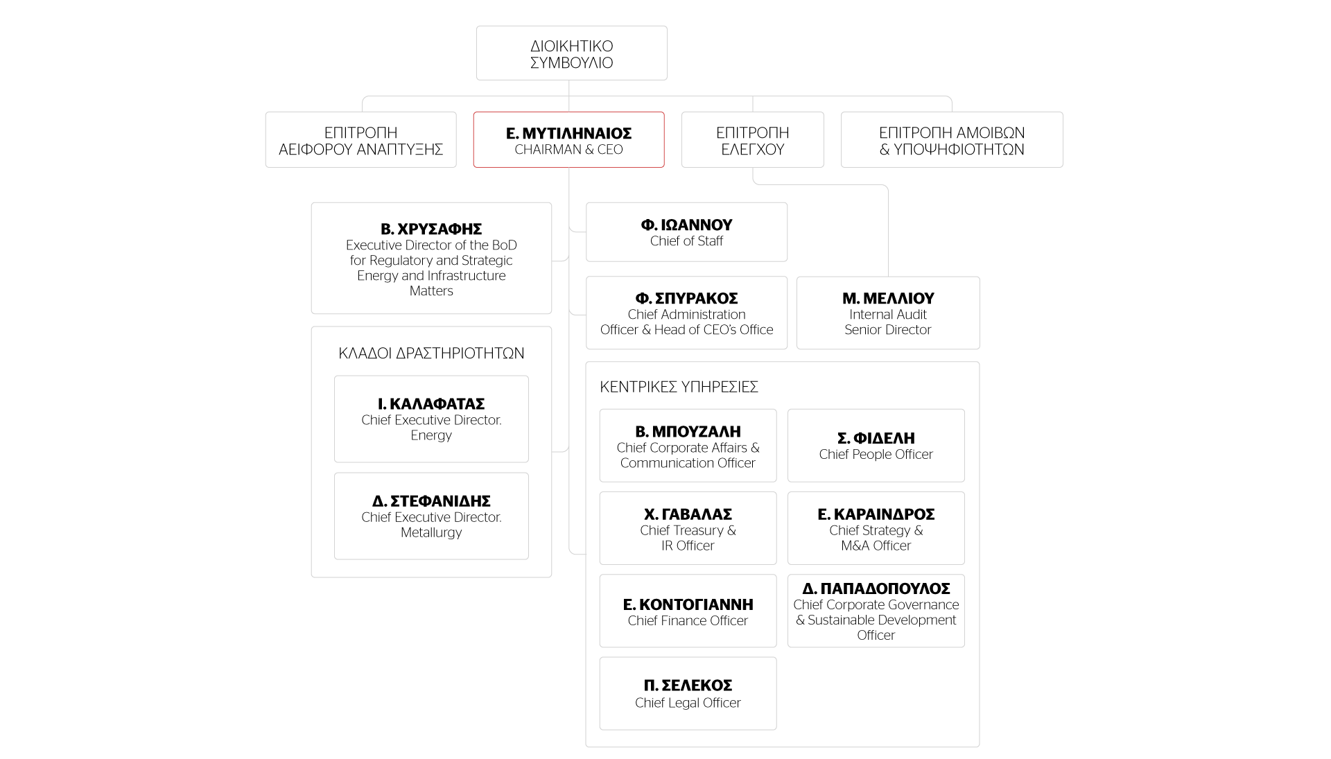 Το οργανωτικό σχήμα της METLEN διευκολύνει τη λήψη και την υλοποίηση αποφάσεων στο πλαίσιο εφαρμογής της στρατηγικής της Εταιρείας, ενώ καθορίζεται το σύνολο των σχέσεων και των ρόλων που προκύπτουν για το συντονισμό των έργων με κεντρικό σύστημα ελέγχου.