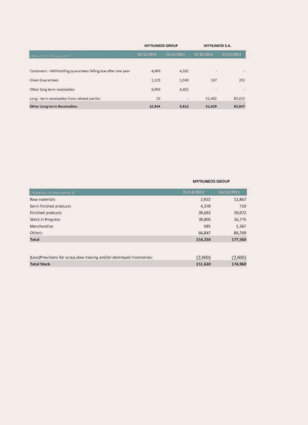The Long-term receivables from related parties relate to intercompany loans. The Parent company MYTILI-