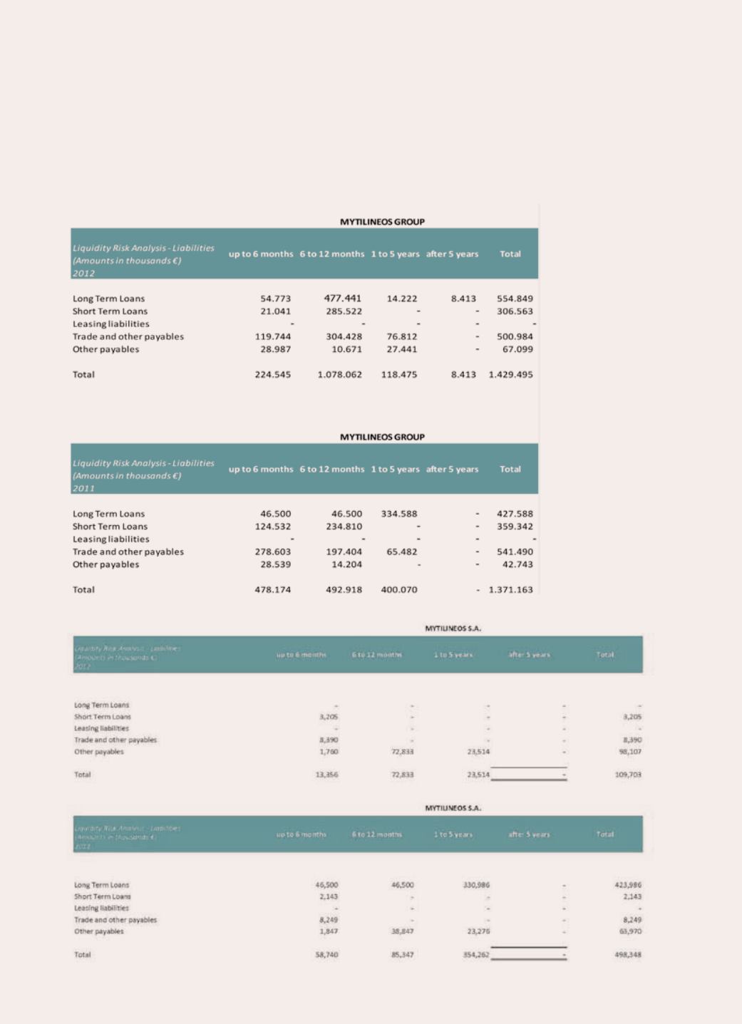 The tables below summarize the maturity profile of the Group’s financial liabilities as at 31.12.2012 and