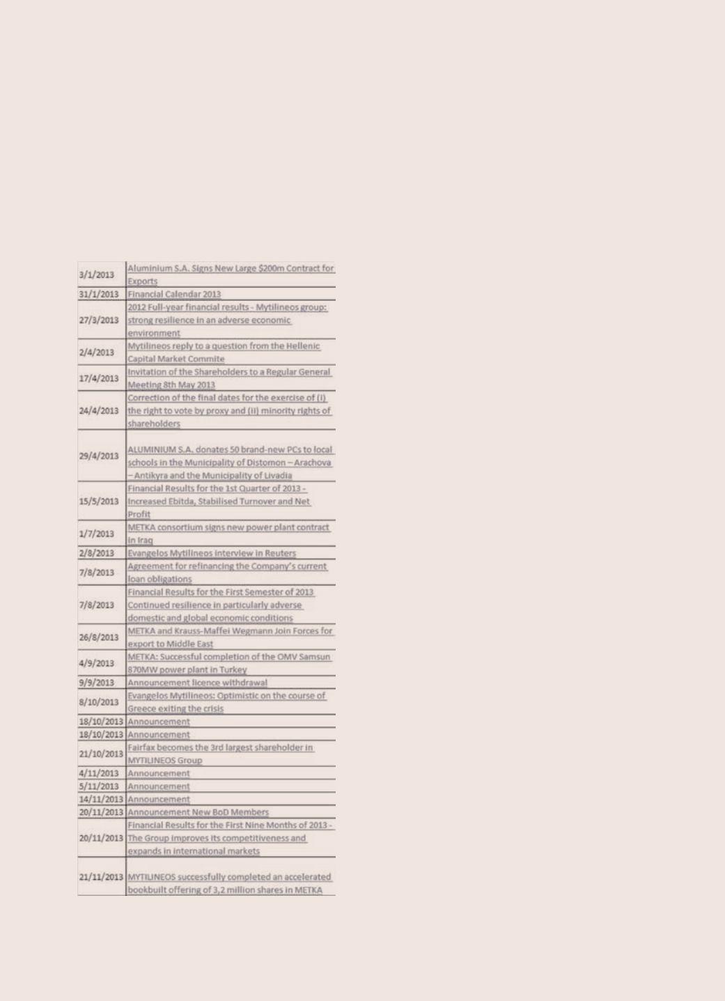 MYTILINEOS HOLDINGS S.A. published to press the following information of article 10, Law 3401/2005 and