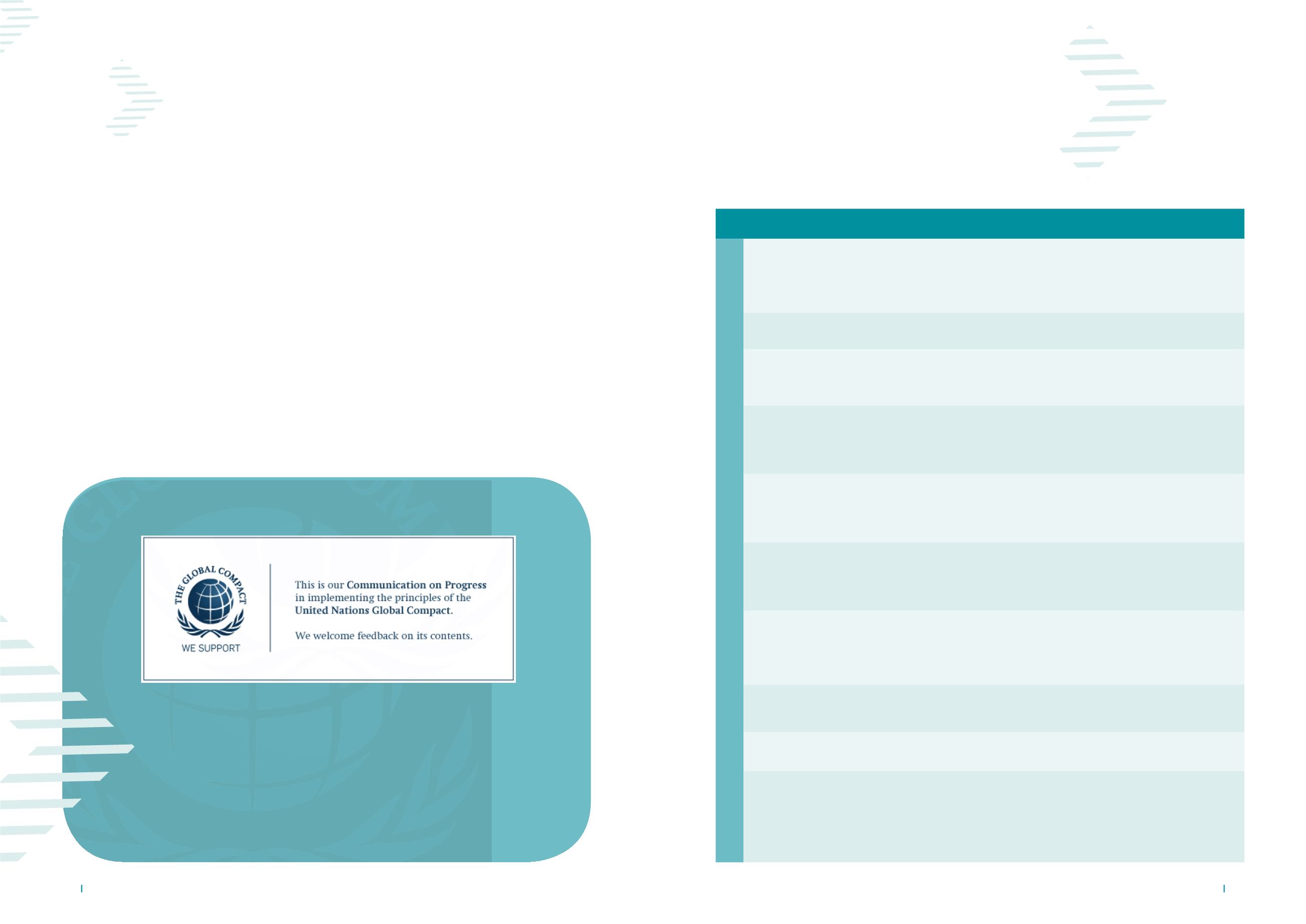 The table below presents the Group exposure to the Ten Principles of